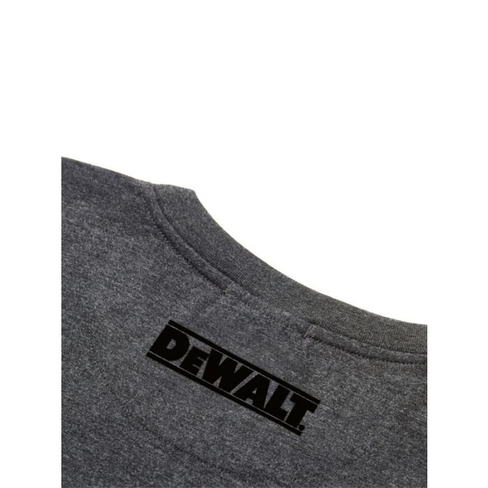 Charcoal grey t shirt with a ribbed crew neck for added comfort. Dewalt branding to chest & Guaranteed Tough logo to sleeve. Twin needle hem & cuff stich.