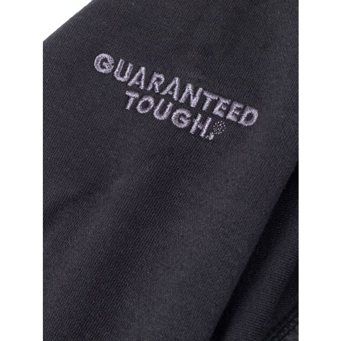 Grey marl hooded sweatshirt. Three piece hood construction with flat draw--cord. Kangeroo pocket to front. Self fabric side panels with eyelet holes for ventilation. Large Dewalt logo to front. Guaranteed tough logo to right arm. A warm garment for those colder days at work.
