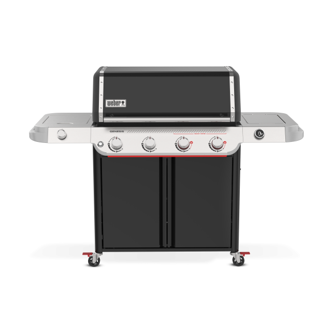 Take your entertaining to the next level and create unforgettable food with the reinvented 4-burner Genesis® E-435W Gas Barbecue with Sear Zone and Side Burner. Crank up the heat with two Boost Burners that unleash up to 35% more power in the extra-large Sear Zone for bold, flavourful sear marks on meat, fish, and vegetables. Get even heat across the cooking grates with the upgraded high-efficiency PureBlu burner system that ignites reliably and maintains a consistent gas flow. Enjoy a side burner for simmering or sautéing and an easy-to-read digital thermometer. Explore new ways to cook and entertain with the included Weber Crafted® Gourmet BBQ System cooking grates that hold a variety of grillware (sold separately), like the sear grate, pizza stone, griddle, and more. Add a Weber Crafted® Frame Kit (sold separately) to fit a variety of Weber Crafted® grillware (sold separately). Keep utensils, seasonings, and prepped food handy, ready to barbecue and easy to serve with customisable side tables that fit a variety of Weber Works drop-in accessories and snap-on accessories (sold separately).