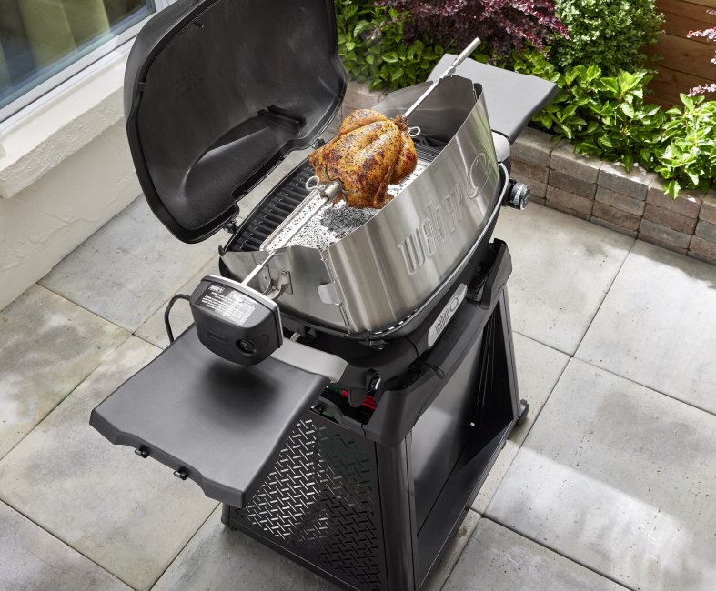 • Add a rotisserie to your Weber® Q® barbecue