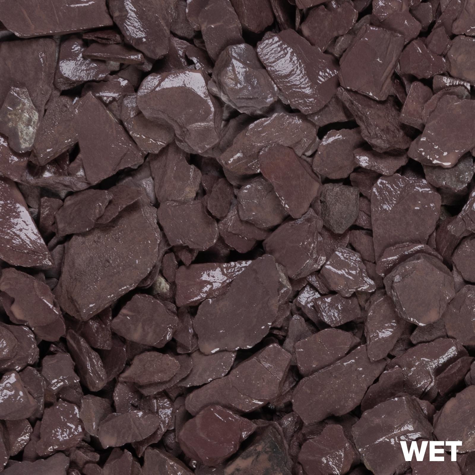 Tippers Plum Slate is a versatile flat, angular decorative aggregate; the aggregates have several applications including for use on driveways, paths and decorative landscapes. The slate is a pleasing reddish, mauve colour that darkens and becomes even more striking when wet. The aggregate does not alter the pH level of the soil underneath it, alternatively, it aids in water retention. This is a naturally quarried product, so there may be slight variations in formation, size, colour and shape.