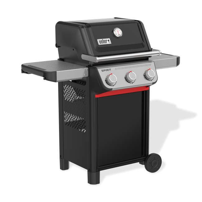 Barbecue food that tastes better than ever on the reinvented 3-burner Spirit® E-315 Gas Barbecue. Ignite each individual burner easily with one hand with Snap-Jet Ignition and control the heat precisely with a full range of temperatures from high to low and everything in between. Make the most of your space by adding a variety of Weber Works accessories that snap onto both side rails.* Keep platters, seasonings and tools within reach with side tables that conveniently fold down to fit smaller spaces. *Weber Works accessories and cooking accessories sold separately.